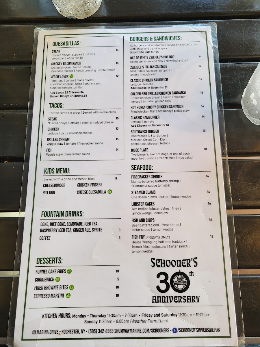 Introducing the menu at Schooners Riverside Pub, a delightful riverside eatery in Rochester, NY, where quality meets comfort. The culinary offerings span from hand-held delights to hearty sandwiches, all crafted to satisfy your cravings. Start with delicious sides like Salt Potatoes and Sweet Potato Fries, perfect accompaniments for any dish.